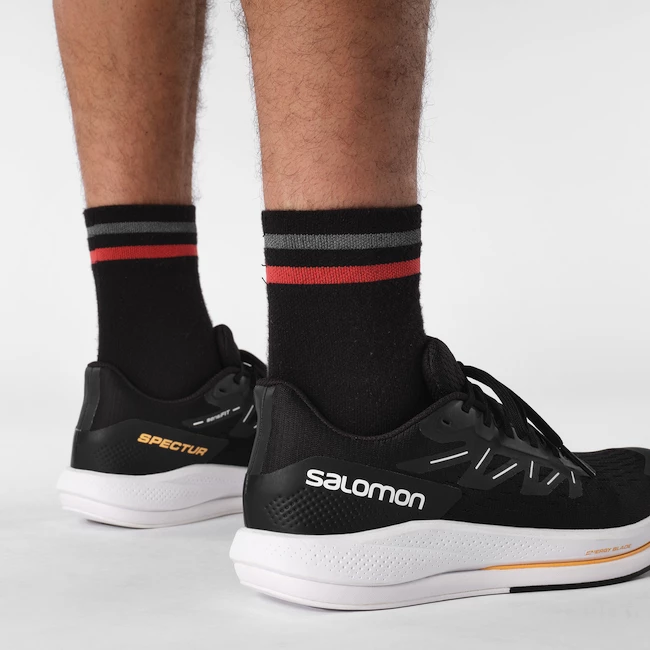 Un amorti optimal est assuré par la semelle intercalaire en mousse Energy Surge légère, souple et douce, qui équilibre les chocs et assure un retour au pied plus doux. La forme de la chaussure Reverse Camber s’inspire des technologies de ski Salomon et assure une transition plus rapide – vous passez donc moins de temps au sol et plus de temps à avancer. L’entraînement alimenté par la technologie Energy Blade assure un orteil agile et une marche plus facile et plus douce.
