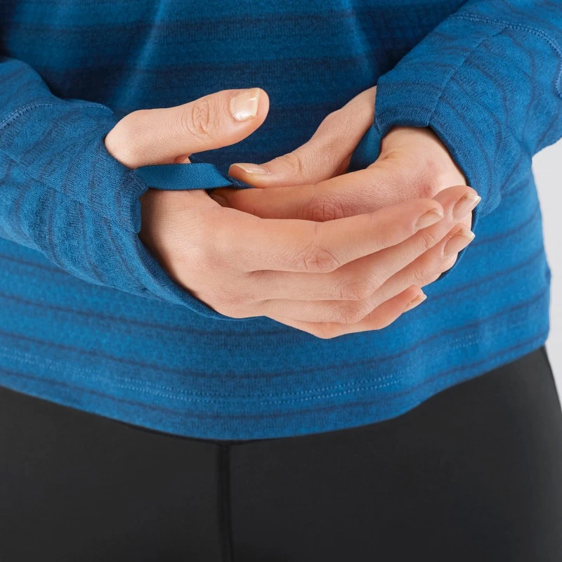 Passant élastique ou fabriqué dans la même matière que le vêtement. Placé sur le bord de la manche, il empêche la manche de remonter lorsque le pouce est passé dedans.