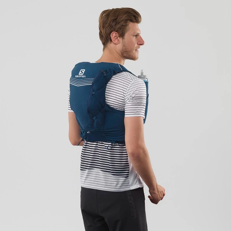 Conçues pour accueillir les softflasks Salomon, ces poches avant réduisent l’effet de ballottement. Les boucles élastiques supérieures maintiennent parfaitement vos bouteilles à portée de main.