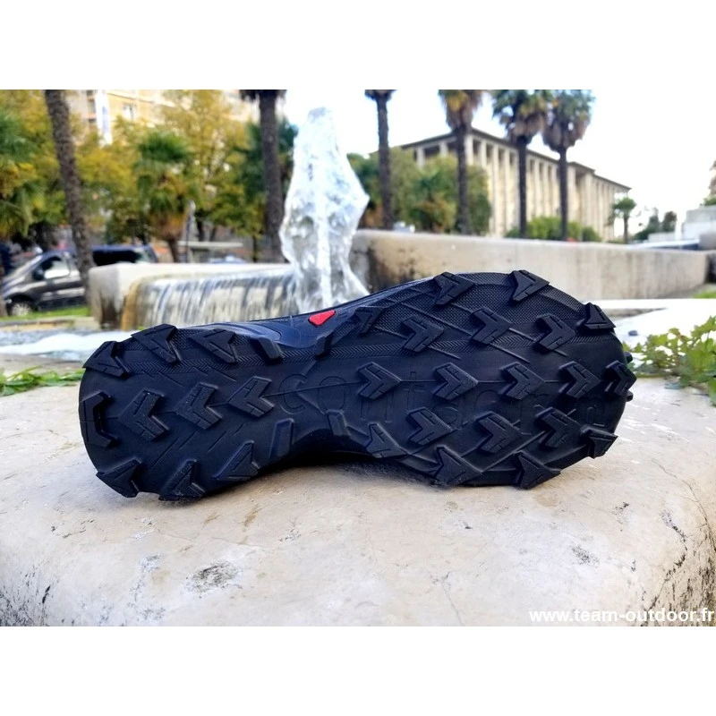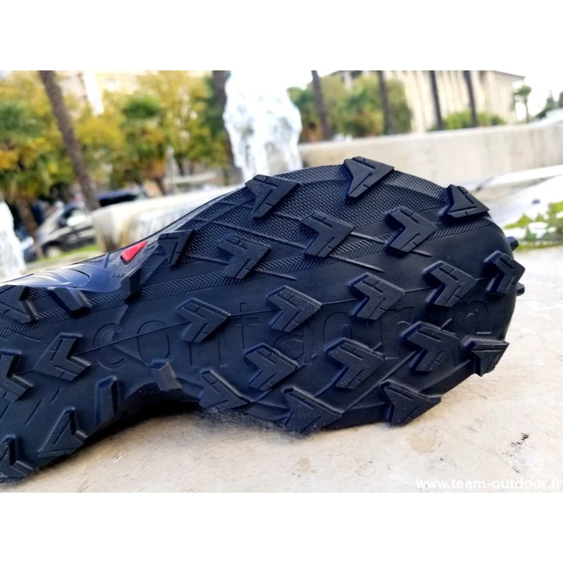 La semelle ultra-adhérente en gomme Contagrip® garantit un contact optimal avec le sol, tandis que les crampons sont spécialement conçus pour ne pas retenir la boue et améliorer l’accroche.