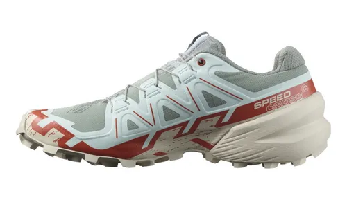 SPEEDCROSS 6 no necesita presentaciones. ManteniĂ©ndose fiel a sus raĂces legendarias y al estado de los senderos, esta versiĂłn es más liviana con una conexiĂłn al suelo aĂşn más poderosa y con mayor agarre y una evacuaciĂłn de lodo más rápida. Con una parte superior renovada que es a la vez funcional y ardiente, y la comodidad clásica de SPEEDCROSS.Una suela exterior actualizada significa que estos Speedcross arrojan el barro más rápido y brindan un agarre aĂşn mejor en superficies mojadas. Con construcciĂłn Sensifit para un punto de apoyo Ăłptimo y preciso, y la comodidad clásica de Speedcross.CaracterĂsticas:Suela Mud Contagrip®: Construido para un agarre máximo en superficies sueltas, blandas, rugosas e irregulares, Mud Contagrip® utiliza orejetas profundas y afiladas hechas de un compuesto que se enfoca en la adherencia.Entresuela EnergyCell™+: Es un compuesto de entresuela de alto rebote que proporciona un retorno de energĂa excepcional junto con una amortiguaciĂłn y durabilidad sustanciales.Sostenibilidad: Material reciclado y fabricados a partir de productos reciclados como botellas de PET o residuos de materialesMaterial superior: Malla Anti-escombros apretada que evita que la suciedad quede atrapada entre el pie y la plantilla.Tejido Ripstop: Telas tejidas, a menudo hechas de nailon, con refuerzo para resistir rasgaduras, rasgaduras y abrasiones.Sistema de lazado Quicklace™: Encaje minimalista y fuerte para apretar con un tirĂłn. Fácil de poner, fácil de quitar.Especificaciones:Suela con incrustaciones: TextilRecubrimiento: TextilSuela: CauchoSuperior: SintĂ©tico/TextilDrop: 10 mmProfundidad de la lengĂĽeta: 5 mmAltura sobre el suelo del talĂłn: 32 mmAltura sobre el suelo del antepiĂ©: 22 mmPeso: 262 gramosSistema de cordones: QuiklaceImpermeabilidad: NingunoAmortiguaciĂłn: RegularProtecciĂłn para los pies: AltoSoporte para los pies: NeutralTerreno al aire libre: Terreno mixto/Fangoso y suaveAnchura del zapato: EstándarColor: NenĂşfar / DĂa lluvioso / Aguamarina blanqueada